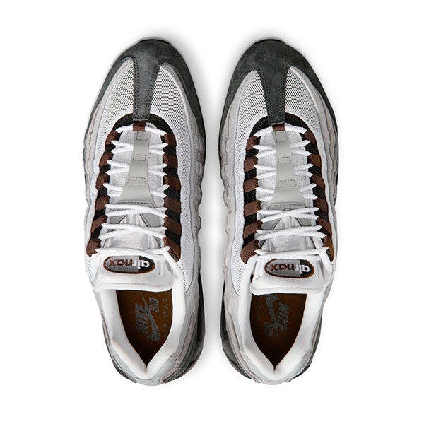 From the moment it dropped in the '90s, the Air Max 95's skeletal-inspired lines, unique synthetic materials, and eye-catching pops of neon green captured the era's aesthetics. Begging to be skated and documented, the Air Max 95's technical running design relegated the shoe to off-board grail. Tasked with adapting a running icon for skateboarding and preserving the look that forged its legacy, the Nike SB team embraced the challenge and delivered on decades of dreams. Pivoting from the signature synthetics of the original, the Nike Air Max 95 features a lighter construction with flexible materials for boardfeel and the functionality skateboarding needs. Known as a higher sitting silhouette, the SB Air Max 95 modified the insole for closer board contact and added herringbone lugs to the outsole for increased traction. Finished with Nike SB branding on the heel, tongue, and TPU shank, the Nike SB Air Max 95 comes through in a black and anthracite colorway with neutral hits and a grippy rubber outsold.