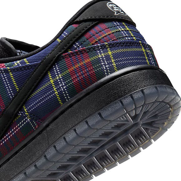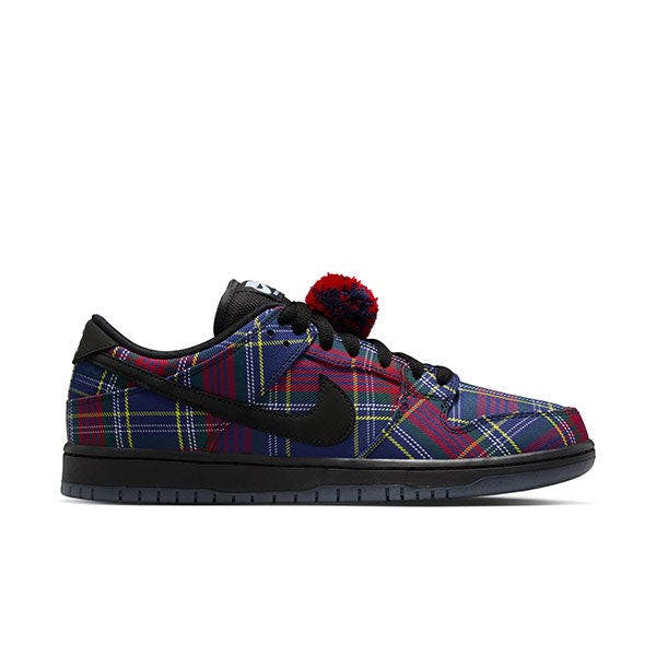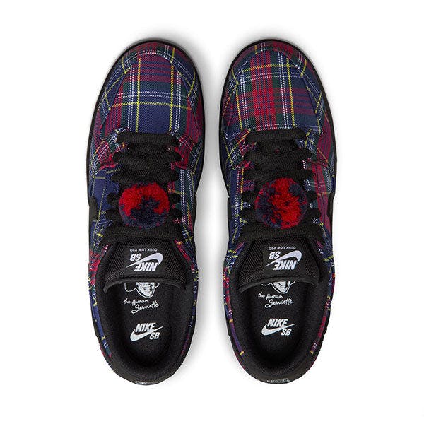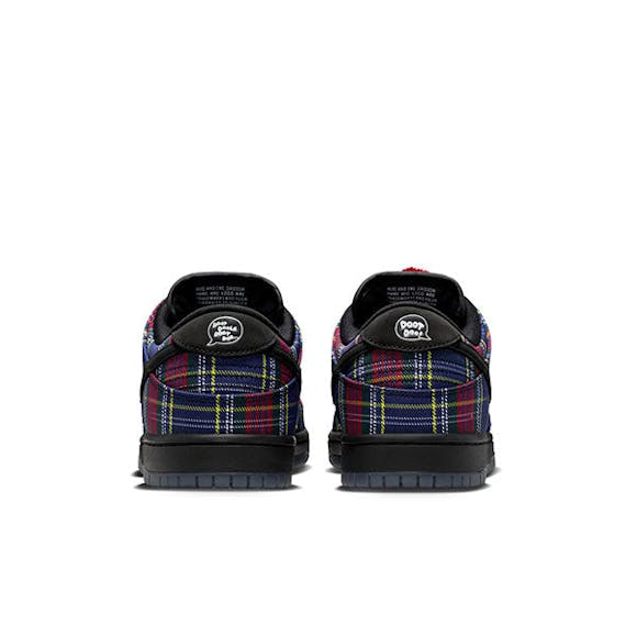 The Nike SB Dunk Low Pro QS x Nardwuar draws inspiration from Nardwuar's iconic tartan check pattern hat.
