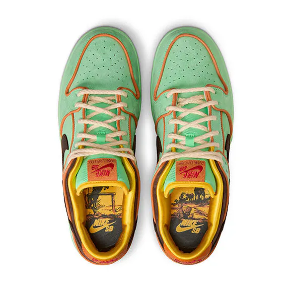 A long-standing staple of the American West, rodeo’s roots reach back to the 1800s. The confluence of mestizo, Indigenous and Anglo cultures the original rodeos manifested in ranch-versus-ranch showdowns, where riding and roping techniques took center stage and rules were few. Among the pioneers of what would become an iconic American spectator sport, Black ranch owners and hands changed the face of rodeo with groundbreaking techniques and crowd-pleasing flair throughout the 1900s. An homage to America’s first action sport, this Dunk Low's colors and details are inspired by Southwest heritage unique to its Black pioneers. Blazing a turquoise trail, the Dunk "Rodeo" subverts conventions with bold color choices and boot stitch details in a mixed suede and forest leather upper. Accenting the Dunk’s iconic lines with leather piping and chain-stitched branding, dusty earth tones and Old West accents pop with hits of lightning yellow and a red translucent outsole. Riding off into the range, the custom sockliner art depicts a sun-soaked scene of the frontier exploration forged by Black culture and innovation.