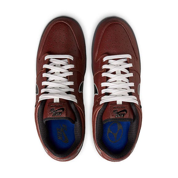Known for documenting their lighthearted approach to heavy tricks and unorthodox spots, Limosine’s constant output always hits the right spot at the right time. Whether they’re clipping up in New York City or taking the crew on the road, their loose way of getting it done brings you into the session and their take on skateboarding. For their first collaboration with Nike SB, their intention was deceptively simple: “We want a football shoe.” Irreverent and literal at the same time, the Nike SB Dunk Low Pro x Limosine pulls from a session staple and transforms the Dunk’s silhouette into an homage to playing catch and keeping things light. Constructed with a rich football-textured leather, the Limosine Dunk features a chrome outlined Swoosh and custom Limo artwork. Bringing you further into the frame, the bright blue sockliner was reimagined to mimic performance football cleats with co-branded logos. Finishing strong, the Limosine Dunk calls an audible with four football lace options and an Americana-themed Limosine heel tab logo.More Details